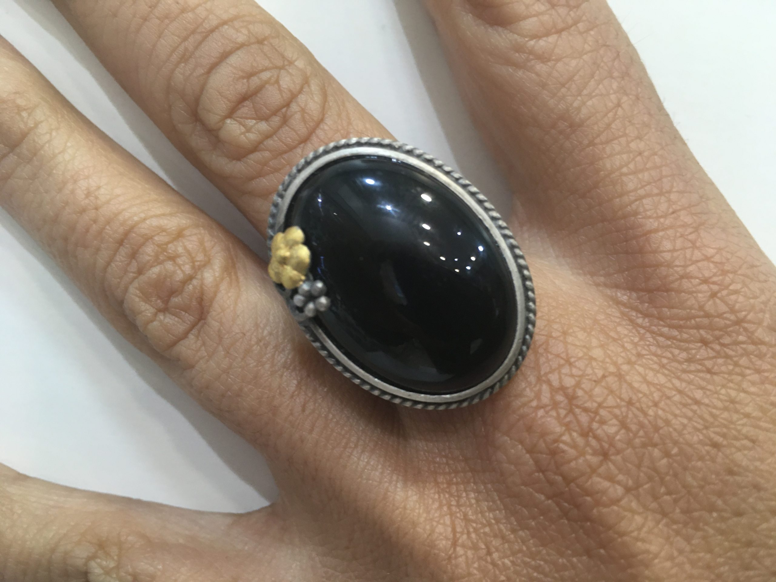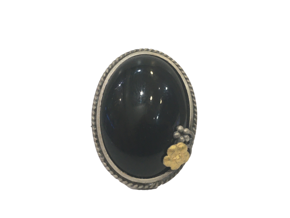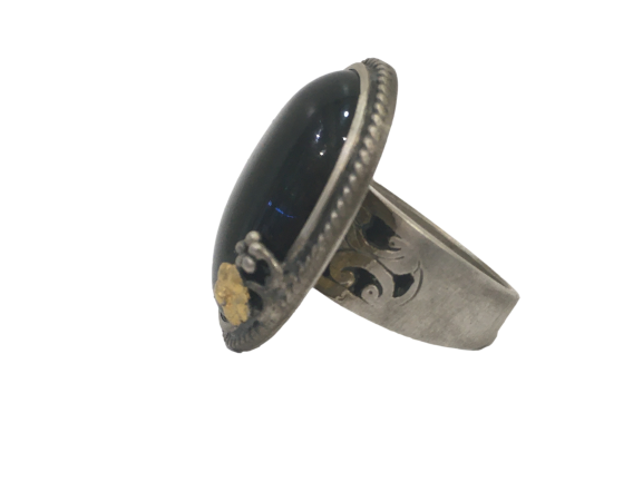 Anillo plata envejecida y dorada con jade negro.