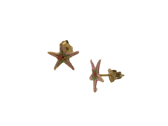 Pendientes estrellas de plata color rosa verde. Diam.12mm