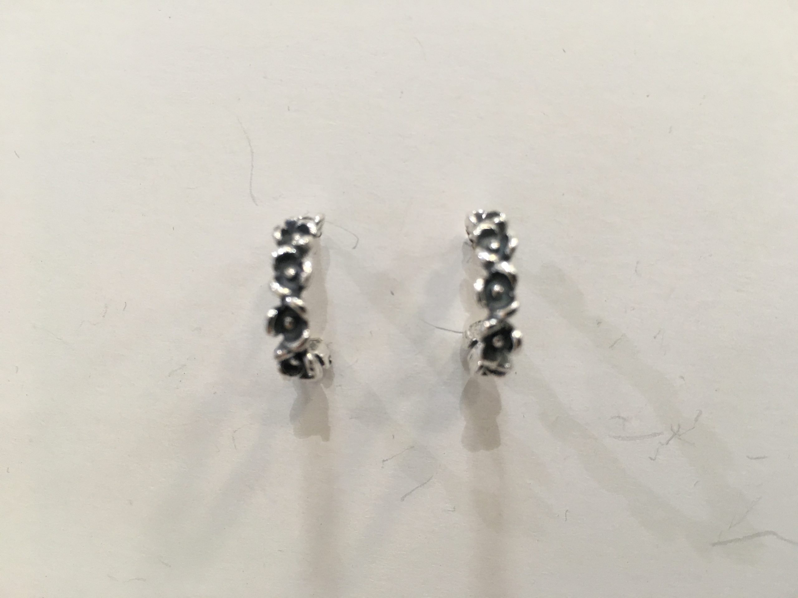 Pendientes aro flores pequeños plata envejecida. diam 1,5cm